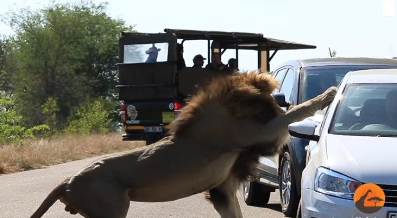 أسد يهاجم السياح بعد أن صدته لبؤة